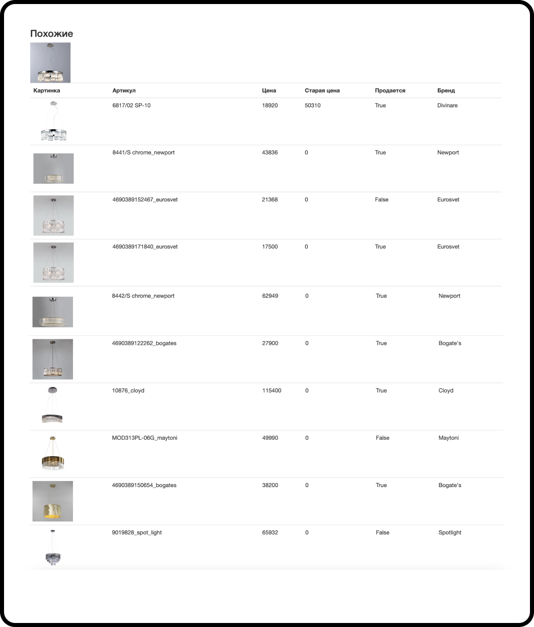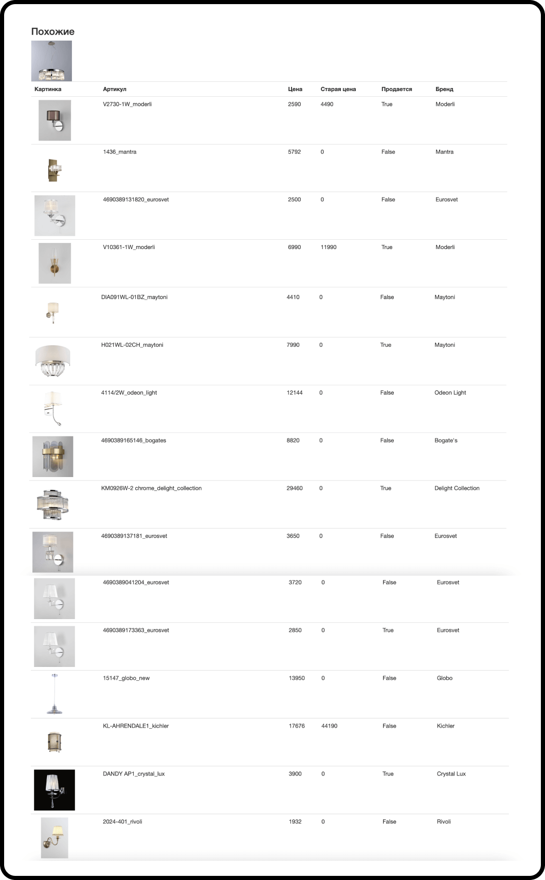 Поиск похожих товаров по артикулу поставщика